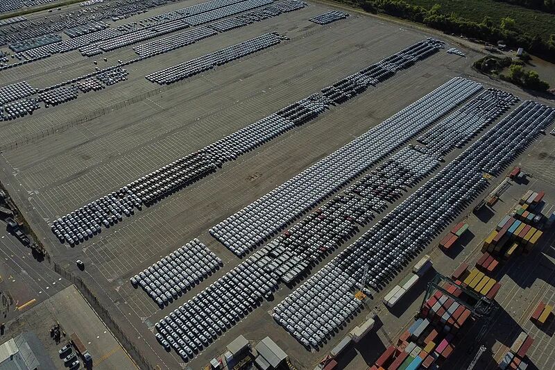 ▲当地时间2026年1月20日,比亚迪约7000辆新能源车抵达阿根廷萨拉特。图源:CFP