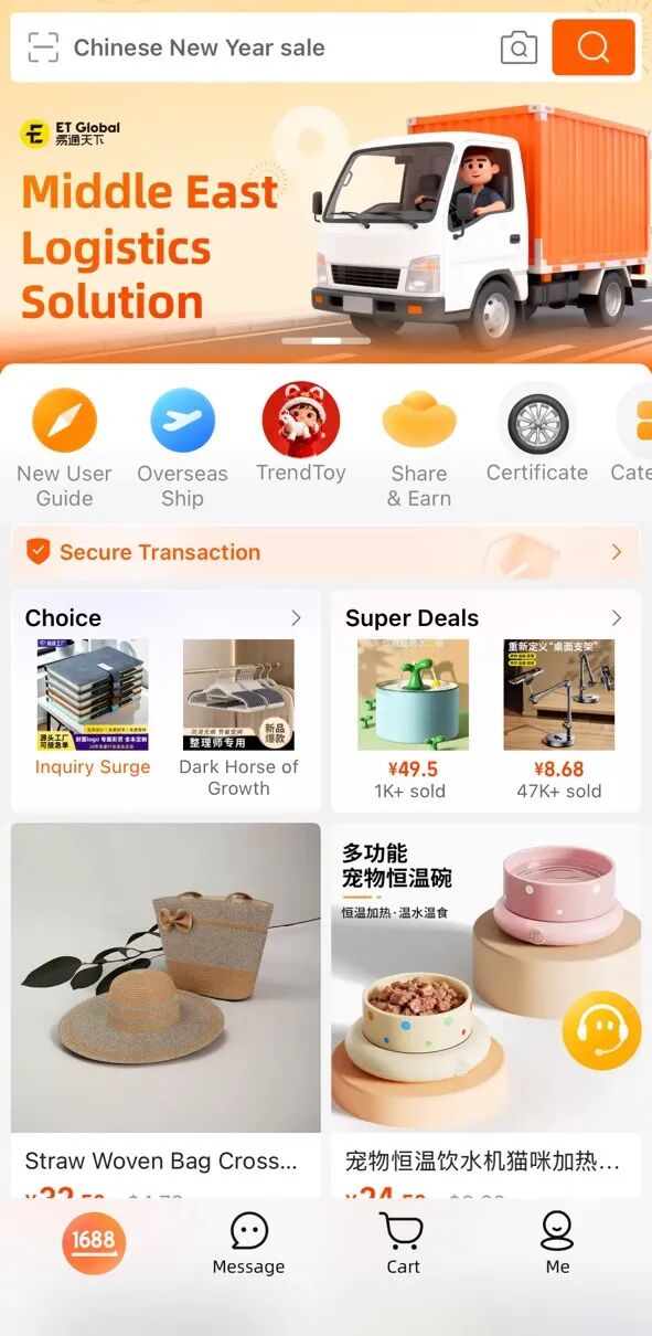 作为阿里巴巴旗下B2B领域核心力量,1688跨境及1688全球站承载着链接中国海量源头工厂与全球采购需求的使命,凭借全品类货源覆盖、小单采购灵活适配、批量定制个性满足的核心优势,成为沙特、阿联酋采购商对接中国供应链的桥梁。易通天下作为1688的合作伙伴,实现中东本地化服务体系:不仅为采购商扫清账号注册壁垒,更构建起“中国仓-国际运输-清关通检-末端配送”全链路无缝衔接的服务闭环,依托其布局沙特、迪拜的本地化仓储矩阵,实现货物极速流转、高效履约,全方位满足中东采购商的多元化贸易需求。