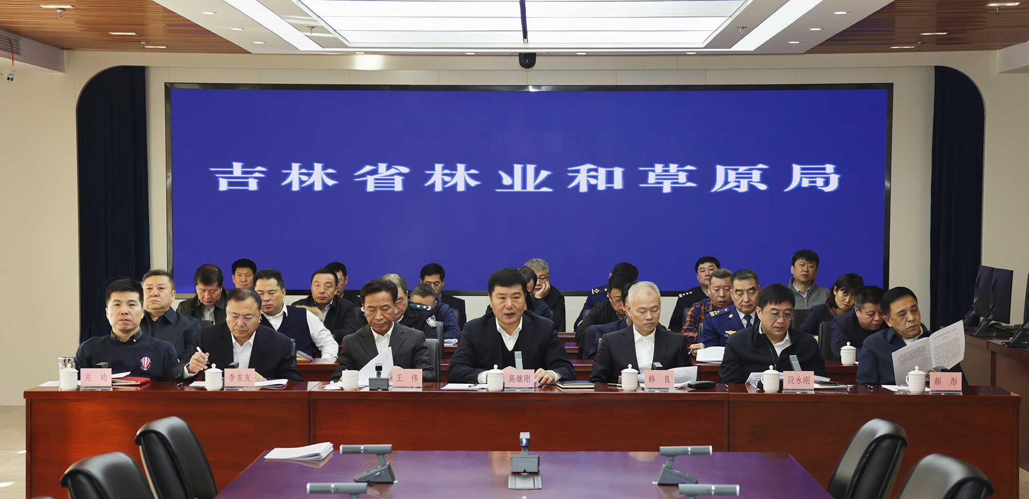 吉林省林业和草原局党组书记、局长高继刚作工作报告,副局长李东友、段永刚、王伟分别通报了2025年度工作实绩突出单位、林草重点生态环保问题整改和“三北”工程建设总体要求。副局长韩良主持会议。