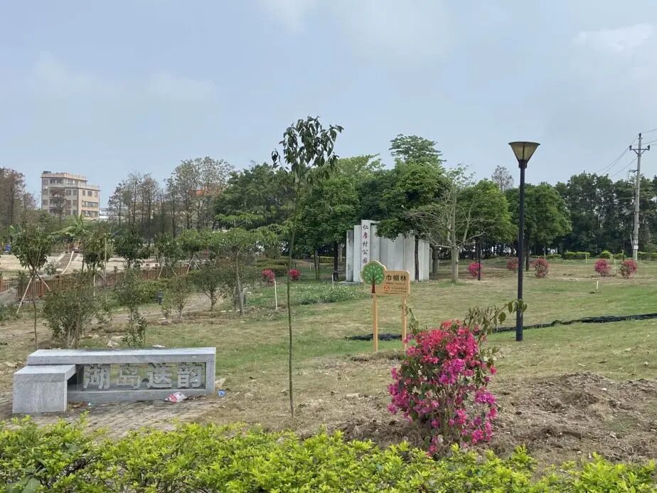 在重要通道和节点种植观赏性强、花期长的景观苗木。沙富海口村在广中江高速侧种植龙眼、黄花风铃、火焰木,打造景观道路2公里;周郡村将1500平方米蚊虫孳生地的整治成效与空间再造相结合,通过硬底化处理后规划为口袋公园,种植26株金蒲桃树、15棵簕杜鹃,让生态建设成果融入村民休闲娱乐生活。