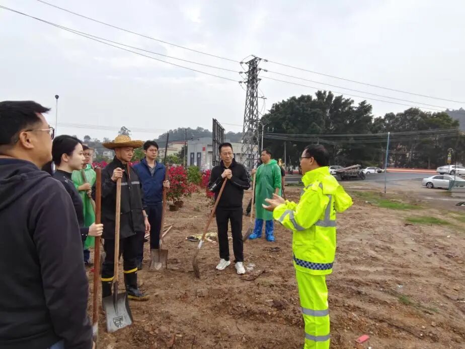 棠下镇党员干部到新棠路开展植树活动