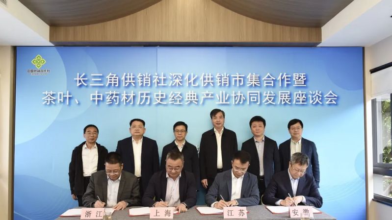 会上,浙江省供销社介绍了2026年长三角供销市集展销会和长三角供销社茶叶、中药材历史经典产业协同发展的提议,上海供销集团有限公司、江苏省苏合投资运营集团有限公司、浙江省兴合集团有限责任公司、安徽省供销集团有限公司签署《长三角供销社历史经典产业(茶叶、中药材)协同发展协议》,聚焦茶叶、中药材产业发展全链条,围绕共建优质基地、共抓全链管控、共拓市场渠道、共育人才科技四大核心方向开展深度协同合作。