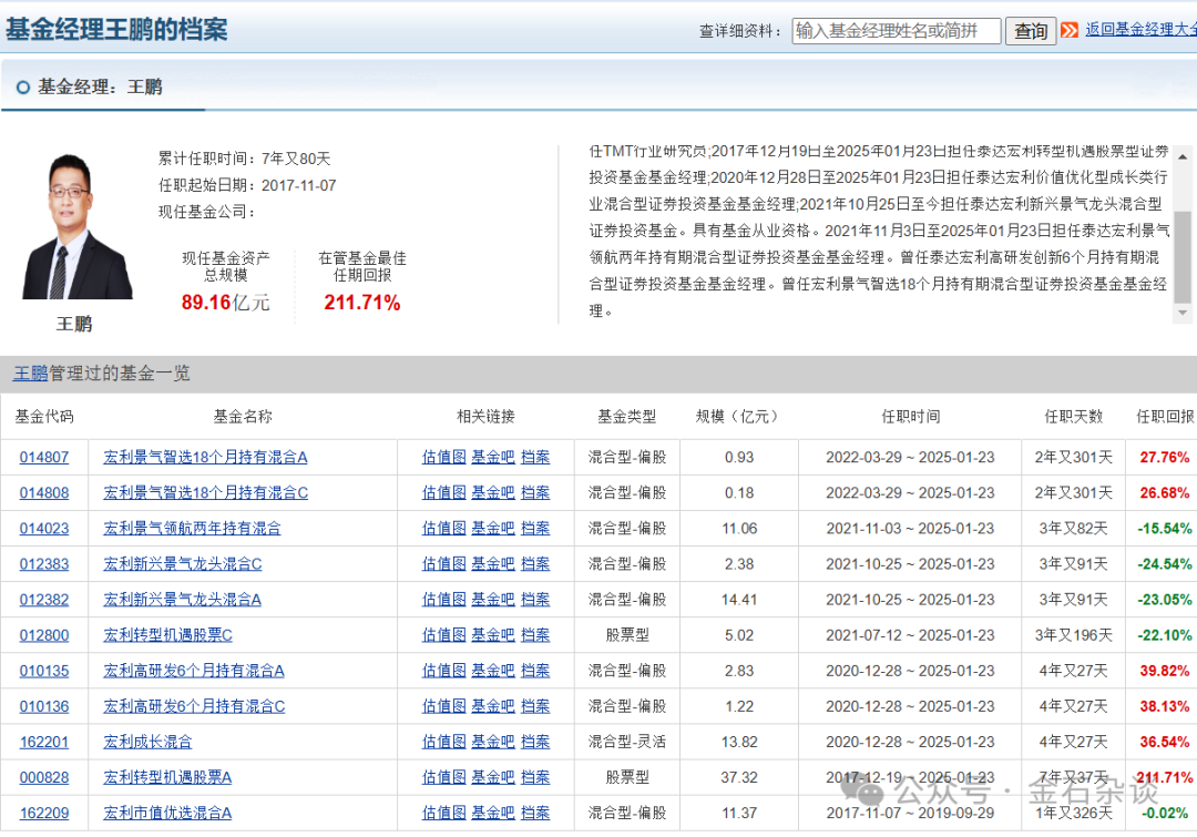 根据公告,本次接盘王鹏这6款产品的基金经理,1)宏利转型机遇由公司老将孟杰接手,他毕业于北大,同样是2015年加入了宏利基金,目前担任公司研究部副总经理(相当于代理王鹏主持工作)。看其业绩虽然不如王鹏,整体还行。