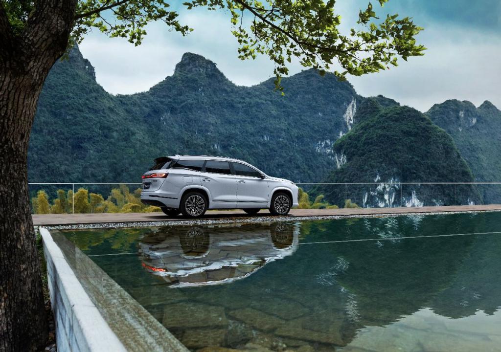 设计语言上,山海家族微笑前脸、峰峦腰线与流水曲觞内饰,将东方美学与现代科技融合。麂皮绒顶棚、水晶按钮面板等细节,更在触觉与视觉层面强化了轻奢质感,让"性价比"与"品价比"得以兼得。