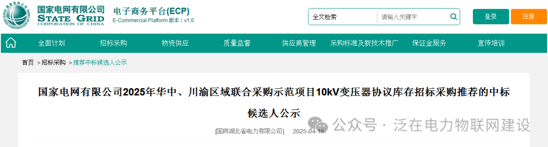 【8.3亿】国网2025年华中、川渝区域联合采购示范项目10kV变压器协议库存——推荐的中标候选人公示