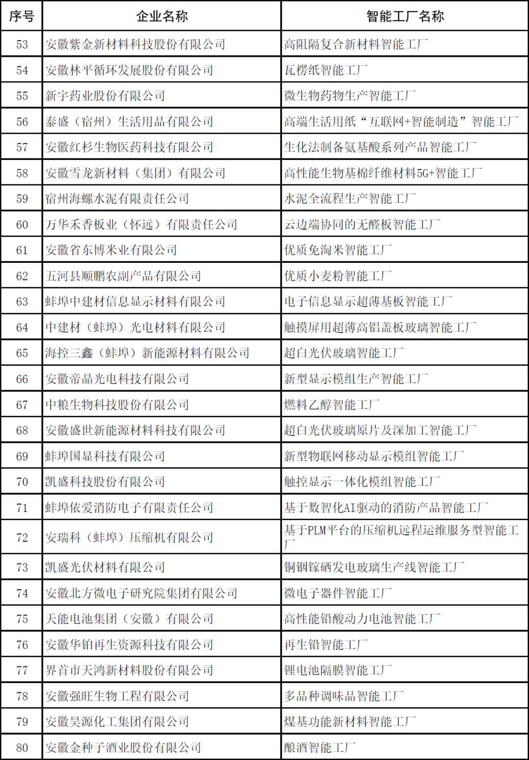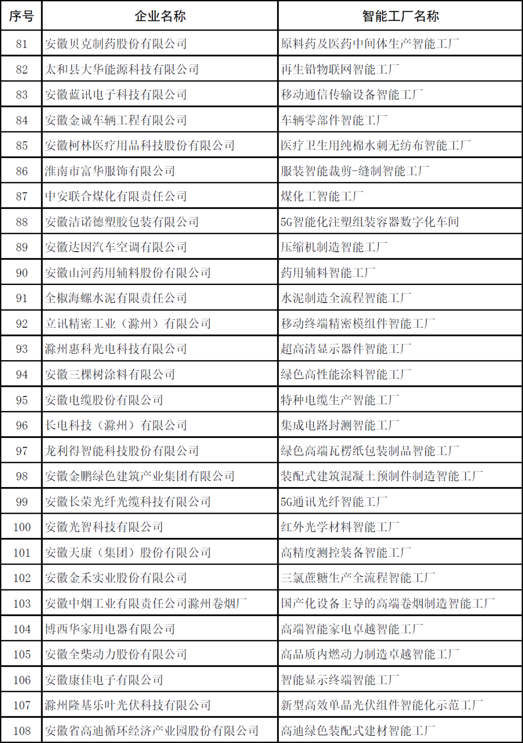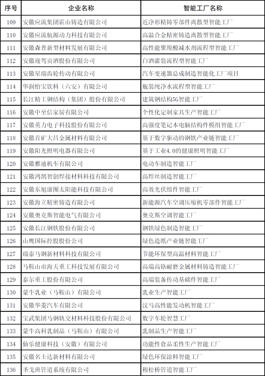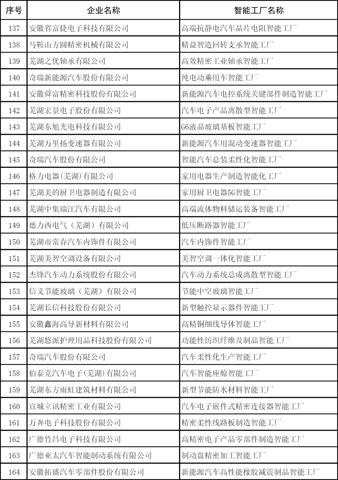 根据《安徽省智能工厂梯度培育行动实施方案》和《安徽省工业和信息化厅关于开展2025年度智能工厂梯度培育工作的通知》,按照相关程序,现对2025年度新认定的52个先进级智能工厂和复核通过的232个先进级智能工厂进行公示,公示期为2025年7月3日-7月9日,如有异议,请在上述期限内实名向省工业和信息化厅装备工业处反映。
