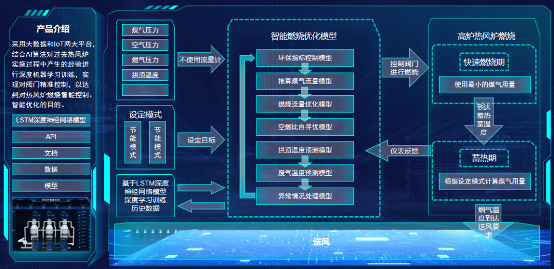 数据预处理,筑牢模型根基。为了让智能优化燃烧系统能够精准“理解”热风炉的运行状况,首先对海量的历史数据进行处理,涵盖拱顶温度、废气温度、环保参数、残氧含量等关键信息,但原始数据往往存在噪声、缺失值等问题。技术团队运用专业的数据处理算法,对数据进行降噪处理,填补缺失值,并将所有数据进行标准化,使数据具备一致性和可用性,为后续模型训练打造坚实数据基础。