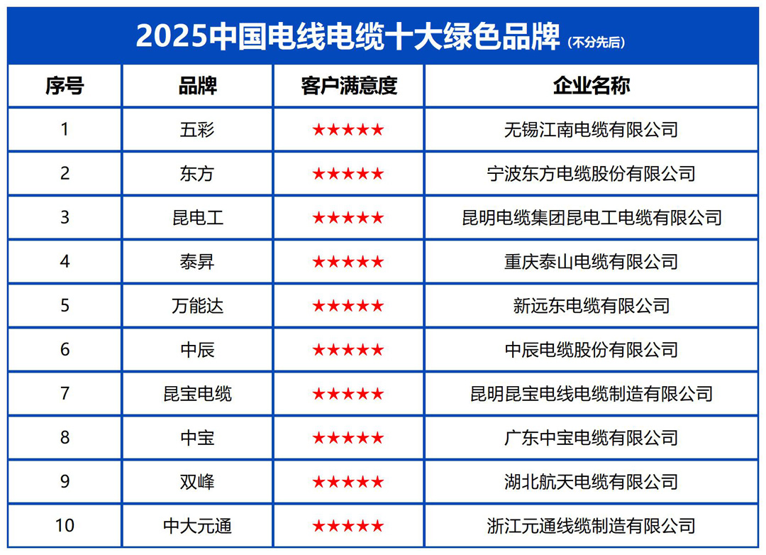 2025中国电线电缆十大绿色品牌发布:以“绿色护城河”重塑行业竞争格局