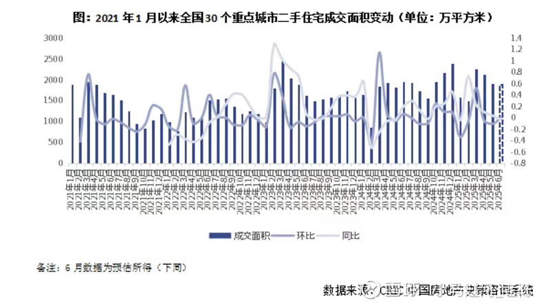 克而瑞监测显示,今年二季度,30个重点监测城市二手房成交仍保持同比和环比齐增,不过按月来看,二手房成交呈现逐月下行趋稳,4~5月稳步回落,6月份的成交增长动能略有放缓。