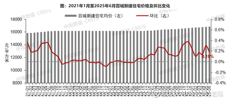 据中指研究院数据,今年6月,全国100个城市(以下简称百城)新建住宅平均价格为16847元/平方米,环比上涨0.19%,同比上涨2.59%;二手住宅方面,“以价换量”依然在延续,百城二手住宅价格继续下行,平均价格为13691元/平方米,环比下降0.75%。