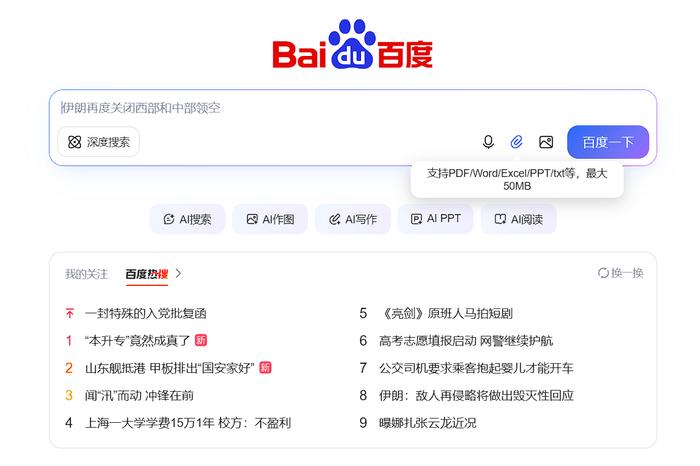 目前,百度的搜索首页已经与其传统的首页不同。经典的搜索框变为“智能框”。原本只支持几十个字的搜索框,现在能放得下超千字的长文本,也可以上传文件,直接集成了AI写作、AI画图等功能。