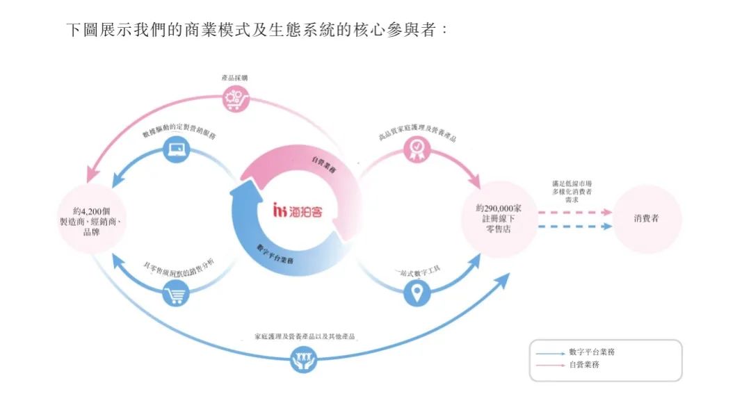 官方招股书显示,公司通过轻资产运营的海拍客平台,链接超4200家供应商与覆盖全国3000个县域的29万家采购商,构建家庭护理及营养品的供应链生态闭环,推动下沉市场消费升级。而按2024年交易额计算,海拍客已是中国低线市场家庭护理及营养产品行业最大的企业服务平台,市场份额达到10.1%。