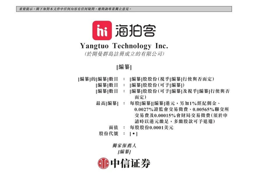6月30日,母婴电商企业海拍客(Yangtuo Technology Inc.)向港交所主板递交上市申请,中信证券为其独家保荐人。