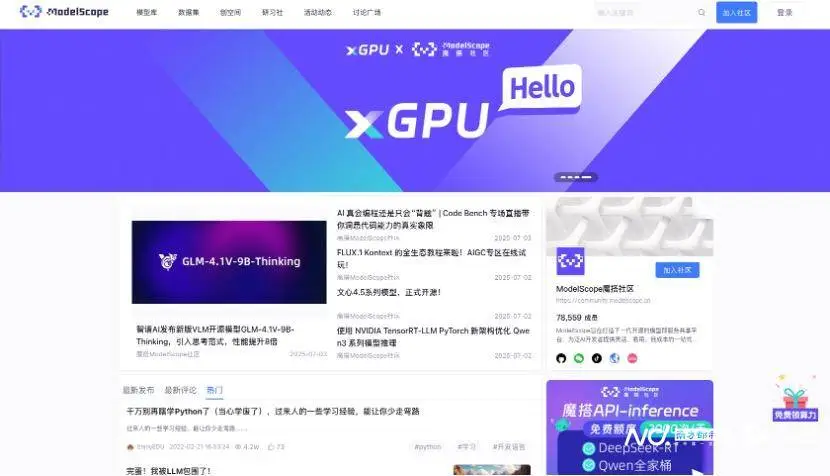 魔搭社区首页。