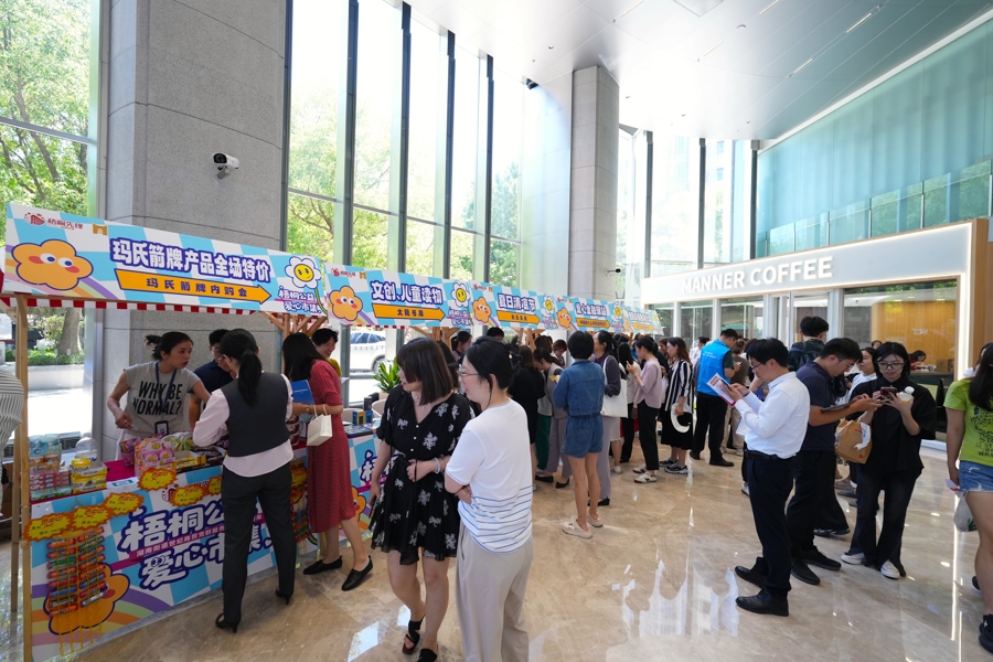 如今,在世纪商贸广场一楼大厅,楼宇入驻企业、全球跨国公司玛氏食品、招商银行以及街区企业上海话剧艺术中心、大隐书局等10余家企业和社会组织共聚一堂,共同参与“梧桐公益·爱心市集”,一起推出“以蔬换书”“微心愿认领”“绿动一夏绿植领养”等公益活动。位于大楼10层党群服务中心的融合共享空间内,世界500强企业lululemon带来“梧桐健康·热力瑜伽”活动,吸引众多楼宇白领参与。