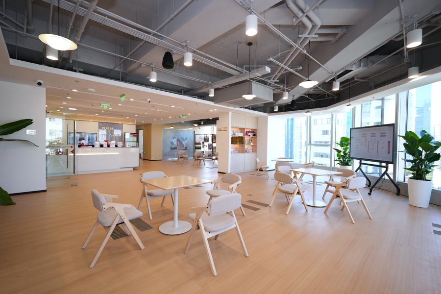 此次焕新启用的湖南街道世纪商贸党群服务中心,位于世纪商贸广场1009-11单元,面积约640平方米,设置了组织活动空间、企事快办空间、商务融合空间、人才服务空间、共享办公空间、社交生活空间、便民服务空间、活力健身空间、母婴友好空间、综合活动空间等10大功能分区。在这个楼宇“垂直社区”中,已实现“楼里办”“楼共建”和“楼宇治”等党建引领服务楼宇经济的新模式。
