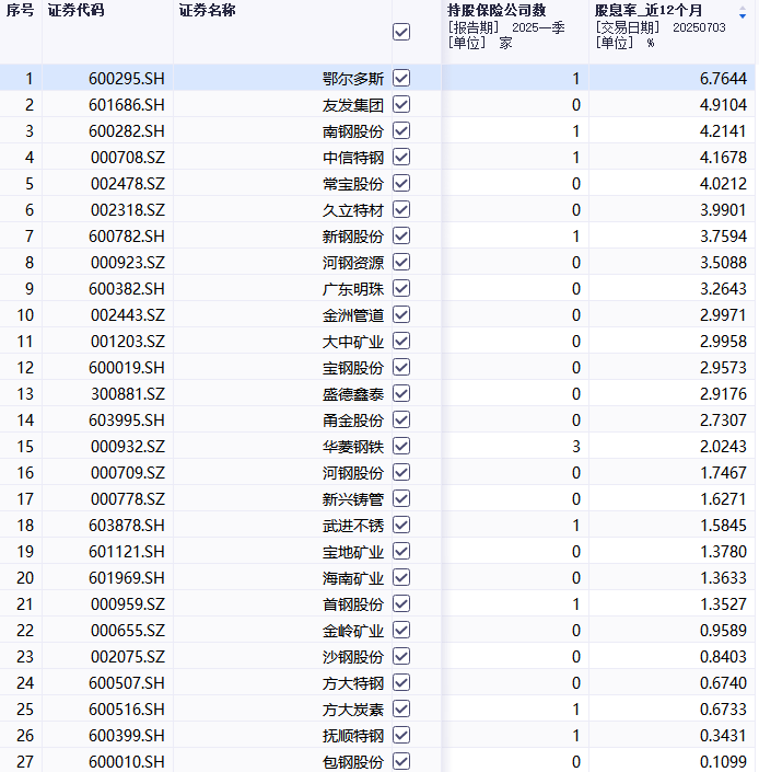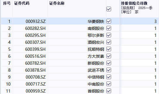 值得一提的是,数据显示,截至2025年第一季度,44家钢企(申万一级行业)中仅有11家企业被险资持股。除了华菱钢铁有3家险资持股外,其余10家钢企仅有1家险资持股。