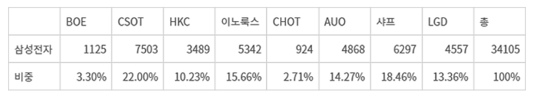 2024年向三星电子供应LCD面板数量及份额。(单位:千台)(资料来源:Omdia)