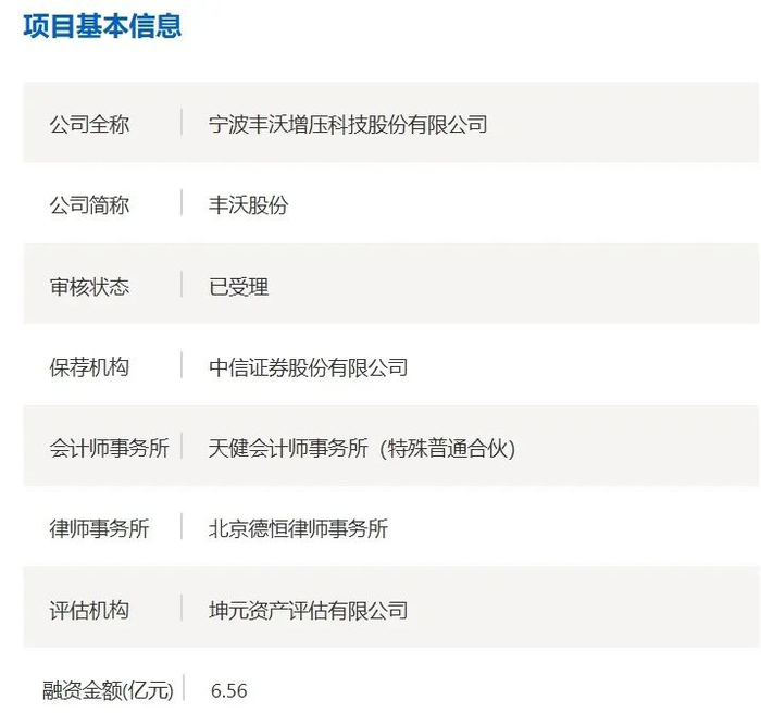 丰沃成立于2016年,主打产品是涡轮增压器,还在向电动增压器和空气悬架零部件扩张,说白了,就是给汽油车和混动总成“增压+提速”的一整套硬核件。