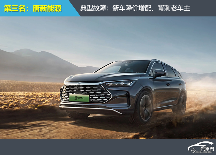 汽车质量投诉点评:唐新能源的投诉指数为205.35,下降16.8%。比亚迪唐新能源推出的智驾版车型因“增配不加价”策略引发老车主广泛不满,核心矛盾集中在新车配置升级导致旧款车型快速贬值,以及厂商未提前披露产品迭代计划。部分车主提车仅 15 天即遭遇改款,认为厂商存在隐瞒产品迭代计划的欺诈行为。