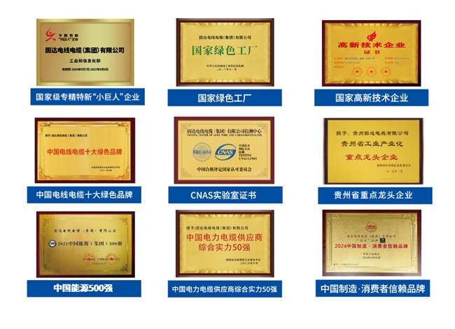 目前,固达已成功服务国内外8000余个重大项目,连续七年入围国家电网、南方电网一级供应商,与中国电建、中国中铁、国家能源集团、国家电投、华润等“五大六小”发电集团,大型央、国企达成稳定战略合作,荣获了“国家级绿色工厂”“中国电线电缆十大绿色品牌”“中国电力电缆供应商综合实力50强”“贵州省重点龙头企业”等多项殊荣,连续8年入选“贵州双百强企业”,已成长为全国最具竞争力的线缆品牌之一。