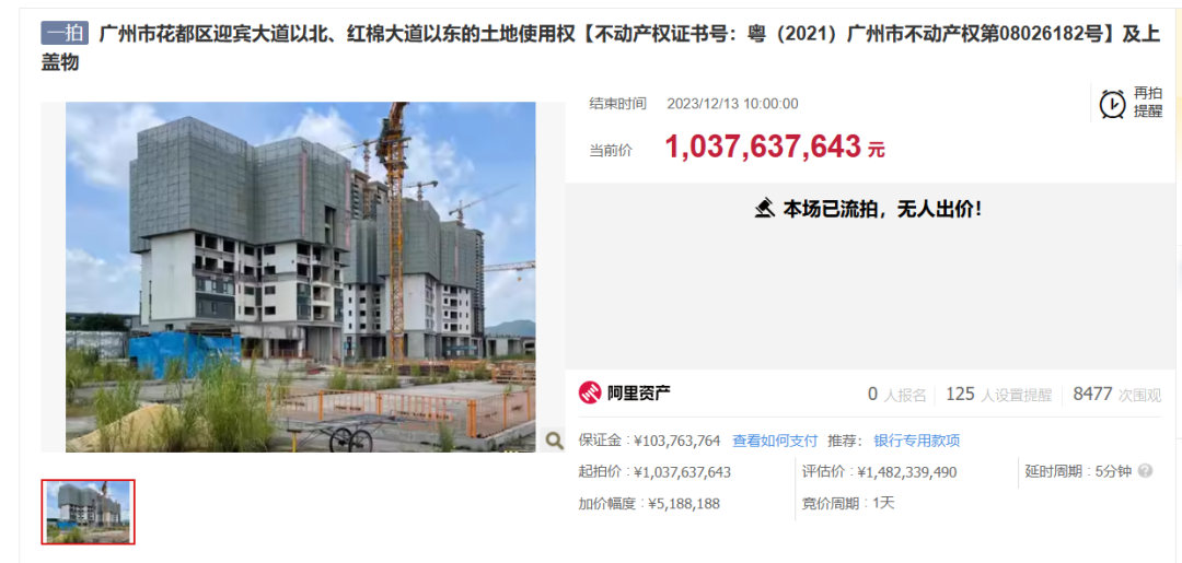 项目的土地及上盖物随后被搬上法院,并在阿里法拍网上挂牌拍卖。