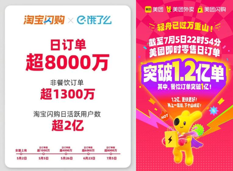 而截至7月5日22时54分,美团方面发布的即时零售战报显示,该平台日订单数突破1.2亿单,其中餐饮订单已超过1亿单,创造历史纪录。