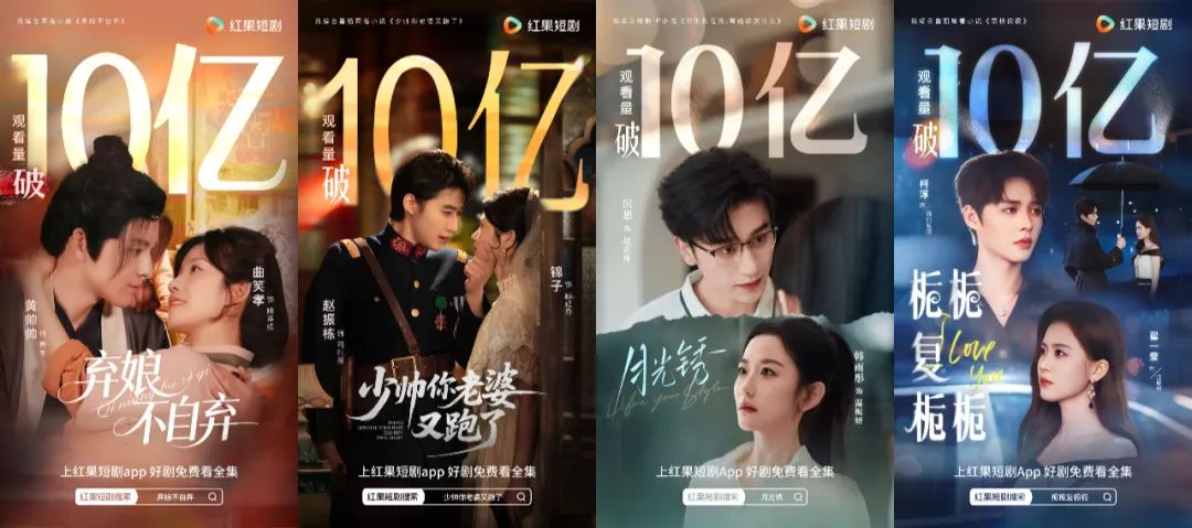 而短剧一哥红果虽然在一个阶段就要放出某短剧播放量破10亿的吸晴话术,但它更多时候都在强调分账成果与站内内容供给类型化,以便吸引更多创作者合作以及推进平台所需的以广告营销为代笔的商业变现。