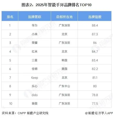 【前瞻分析】2025年智能手环品牌排名TOP10及企业竞争分析