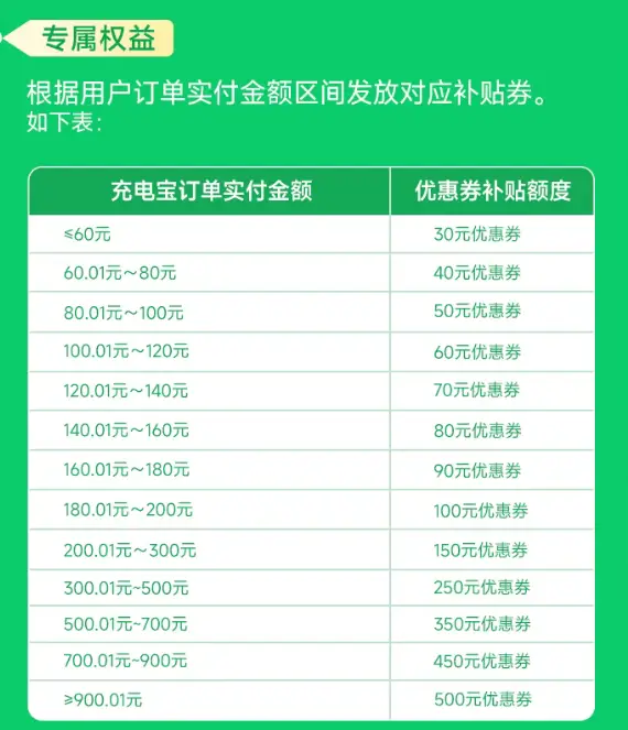 根据要求,持2023年8月1日后线上购买无3C标识的绿联充电宝用户,凭有效购买凭证参与活动可享仅充电宝实付订单金额50%优惠(至高补贴500元)。