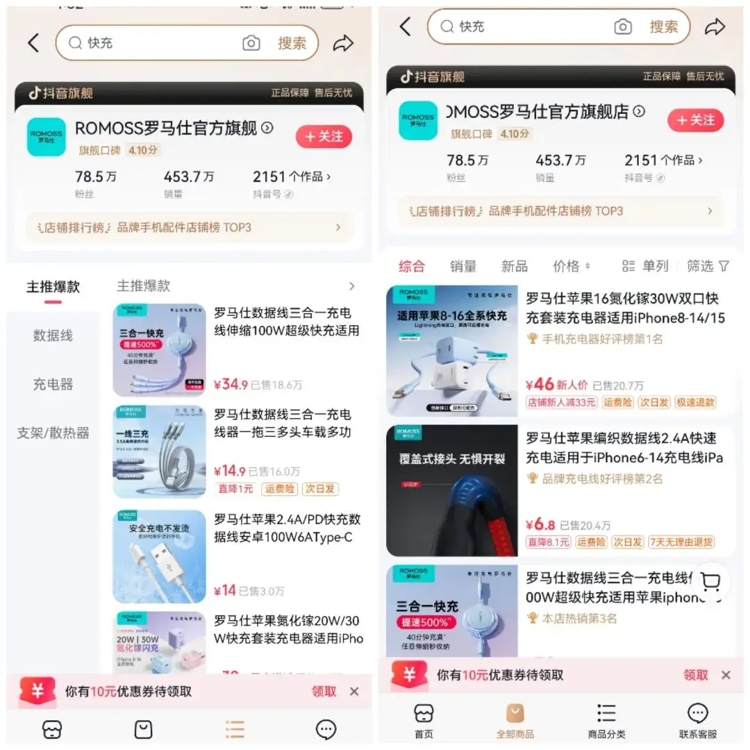 同样地,抖音旗舰店虽未关但商品大幅缩水,仅靠低利润配件维持运营。