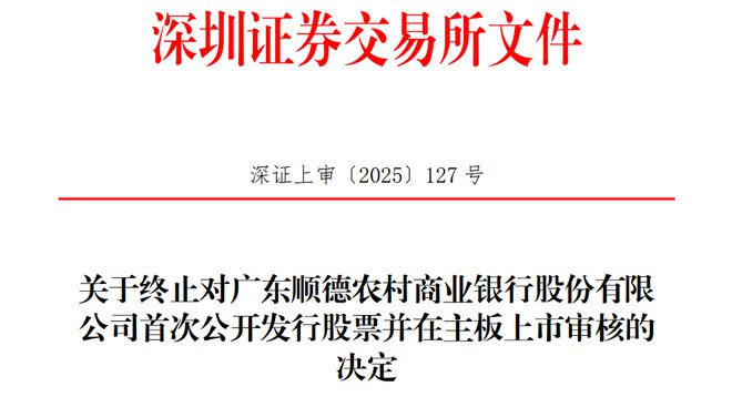 7月4日,深交所公告,因广东顺德农村商业银行股份有限公司(下称“顺德农商行”)及保荐人撤回IPO申请,深交所决定终止对其主板上市的审核。据信息,距离顺德农商行2017年7月IPO辅导备案登记受理,至今已有8年。