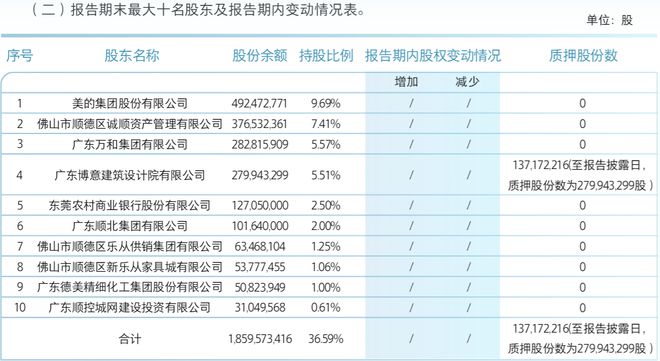 据财报,顺德农商行的股权结构较为分散,2024年末,该行股东总数约8.77万户,前五大股东分别为美的集团、佛山市顺德区诚顺资产管理有限公司、广东万和集团有限公司、广东博意建筑设计院有限公司、东莞农村商业银行股份有限公司,分别持有顺德农商行9.69%、7.41%、5.57%、5.51%、2.5%股权。