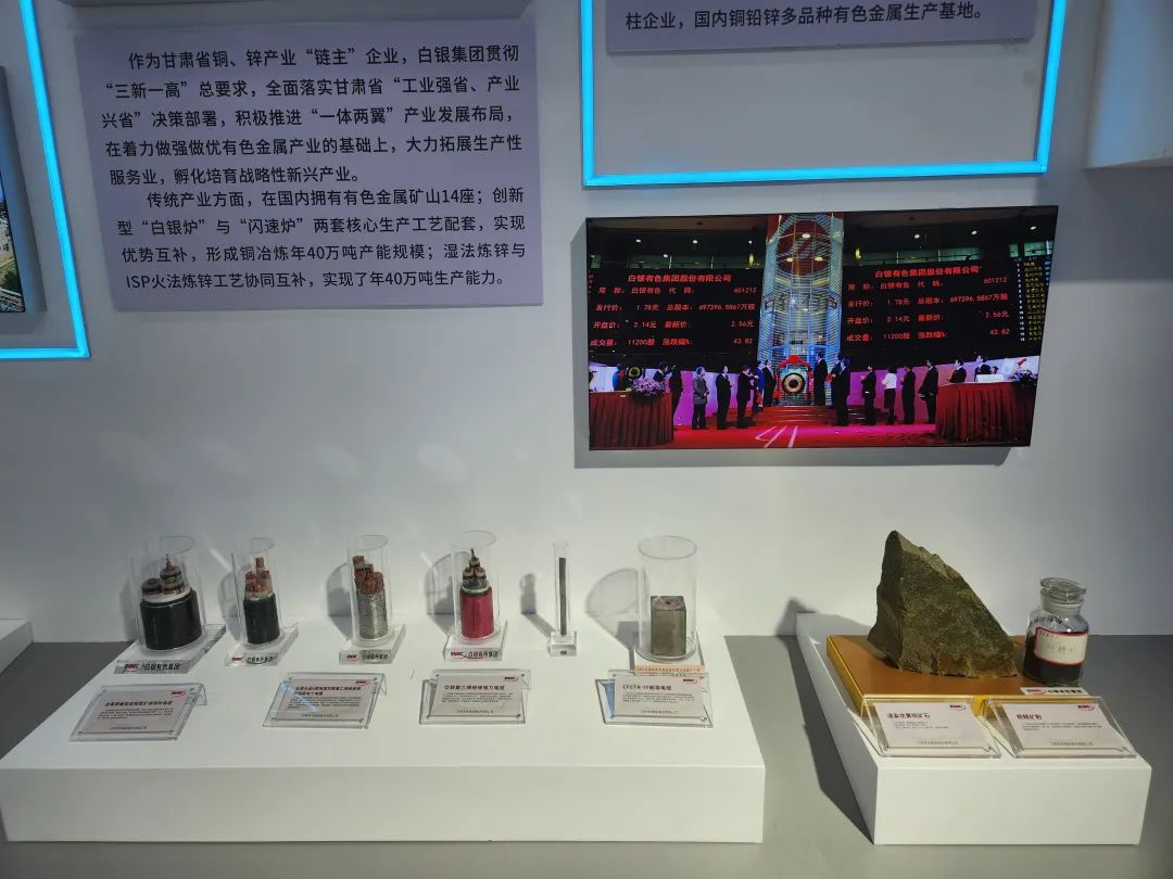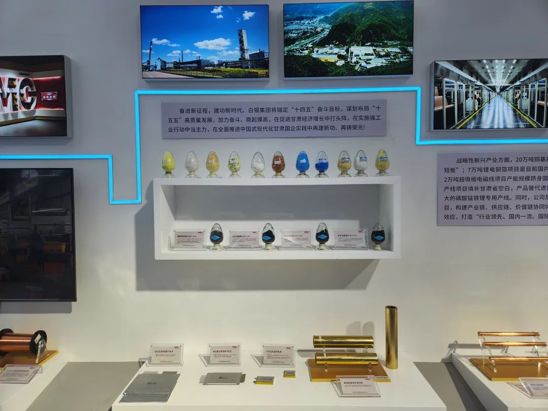 白银集团产品展示区域位于白银馆内,该馆以“群”聚发展新势能,“链”筑产业新高度为主题。白银集团产品展示区域设计精妙,展板、实物以及LED显示屏相辅相成,全方位展示白银集团产业规模、产业链布局、科技创新和产业合作成果。其中,高端电解铜箔、超导电缆、超微细电磁线、高纯铼、高纯碲等明星产品格外引人注目,吸引众多参会代表驻足观看,详细了解产品性能、用途等方面情况。