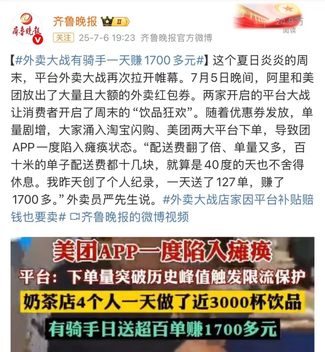 当补贴退潮,能留下的应该是更高效的配送网络、更合理的商家分成、更有保障的骑手权益,以及消费者愿意为合理价格买单的健康市场。