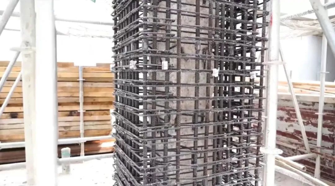 主体结构阶段,预制芯柱与主体结构柱结合形成叠合柱,预制芯柱直接外包绑扎钢筋,浇筑混凝土形成叠合柱,提升施工效率35%:
