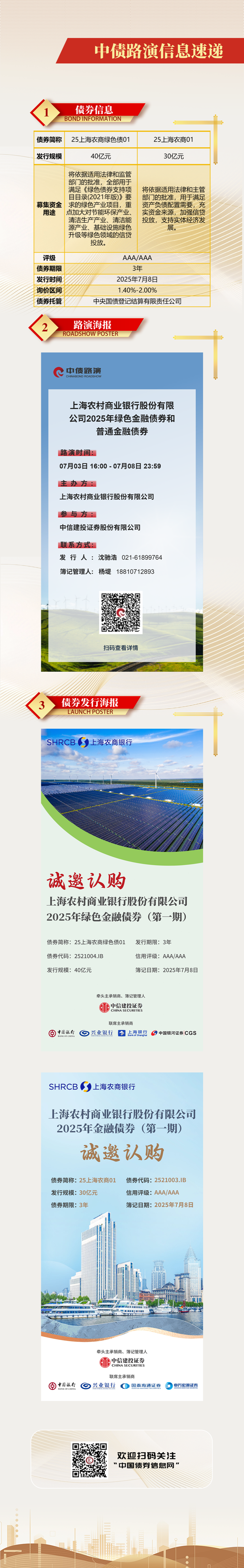 【中债路演信息速递】上海农村商业银行股份有限公司2025年绿色金融债券和2025年金融债券