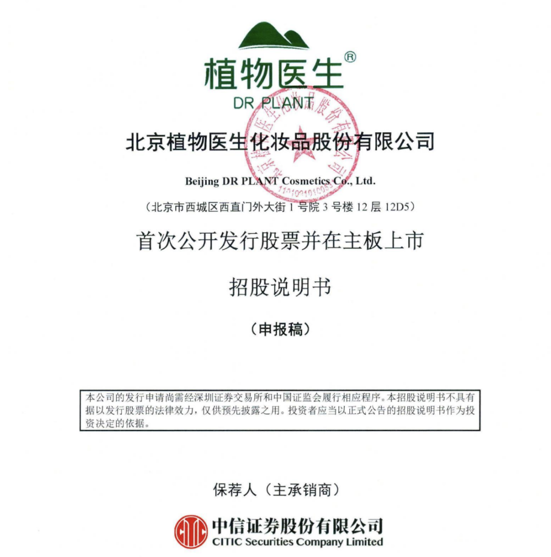 6月27日,北京植物医生化妆品股份有限公司近日披露A股 IPO 招股书,拟在深交所主板上市,中信证券担任保荐机构。