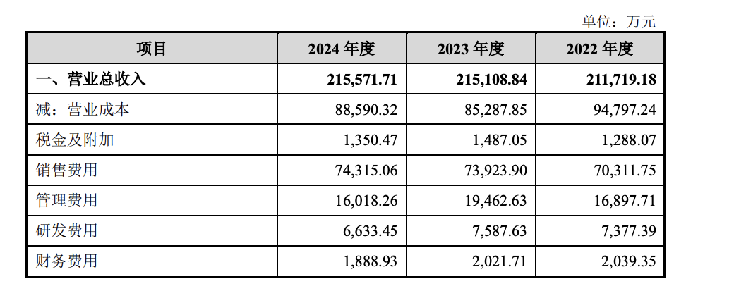 从招股书来看,植物医生近年来业绩表现稳健,2022年至2024年,营业收入从21.16亿元增至21.55亿元,归母净利润从1.68亿元提升至2.42亿元。其中水乳膏霜为核心收入来源,近三年占比持续提升至 56.52%。