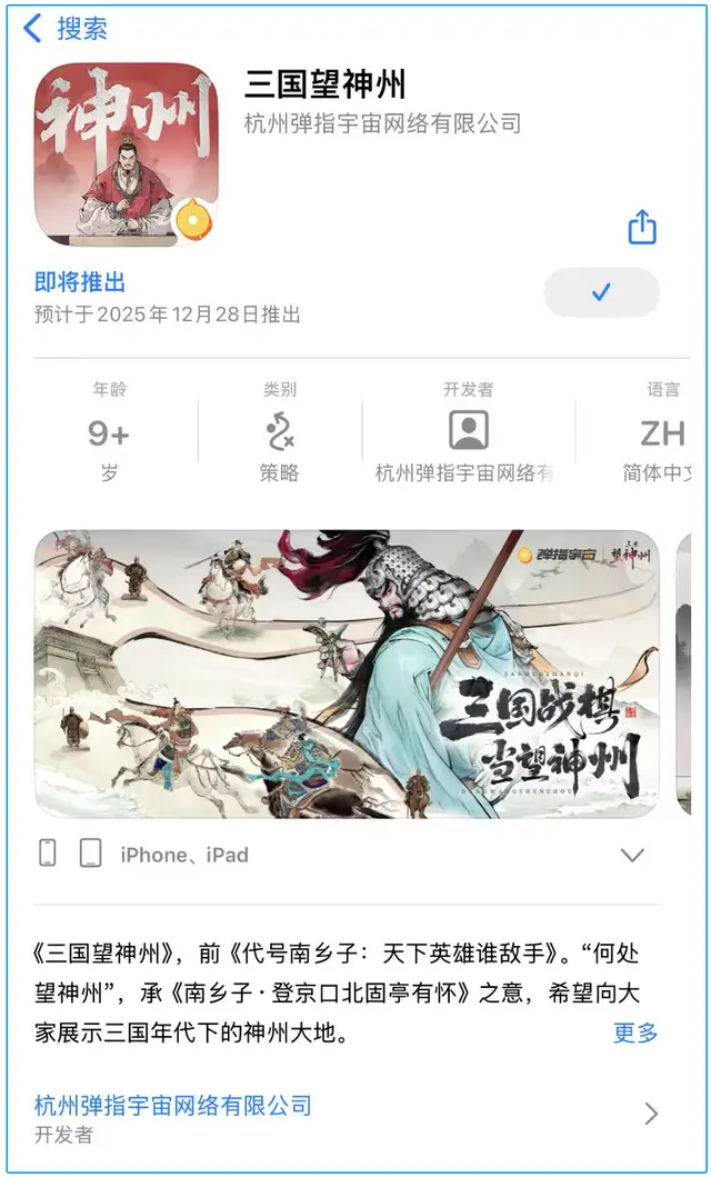 《三国望神州》是一款三国战棋游戏,由快手旗下自研游戏厂牌——弹指宇宙制作并发行的战棋游戏,该作无论是画风、实际体验以及玩法打磨,都收获玩家好评如潮。
