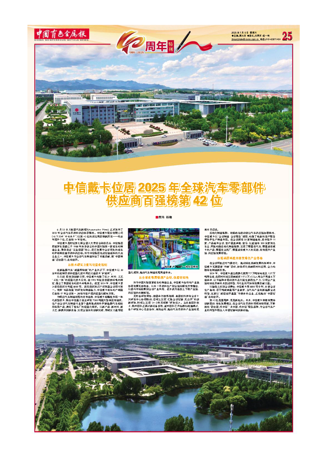 【创刊40周年】中信戴卡位居2025年全球汽车零部件供应商百强榜第42位