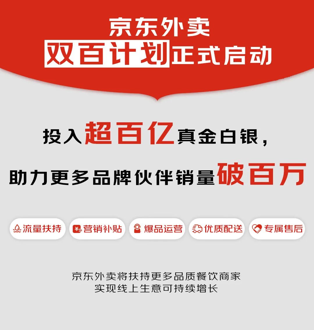京东外卖:近200个餐饮品牌销量破百万,“双百计划”投入超百亿扶持品质商家