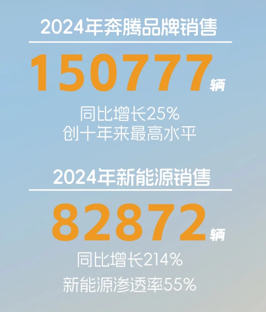 数据印证转型成效。2024年,奔腾品牌销量达15.1万辆,同比增长25%,创十年来峰值。