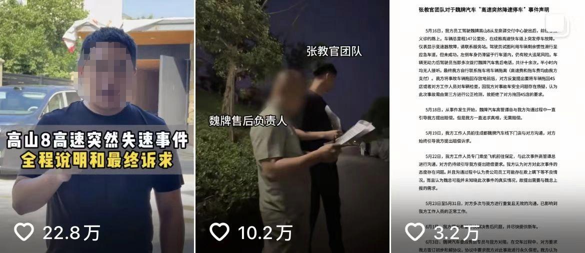 抖音760多万粉丝的网红“张教官的有趣人生”(下文称张教官)近日发视频维权,称自己刚买的魏牌高山8 MPV提车后仅行驶了100多公里就出现了故障。为此,张教官发视频公开喊话长城董事长魏建军,要求当面交谈。但张教官的这一诉求并未得到满足,其在网络上表示自己的消息均未得到回应且魏牌售后团队处理态度敷衍,问题迟迟没有得到解决。