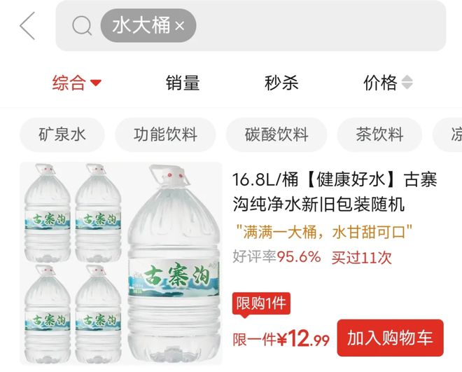 不过,该网友发现,该款纯净水的单价上涨至12.99元,"前几天,美团优选说没就没了。刚刚打开多多买菜,我唯一经常买的就是水了,你还涨价,还涨这么多!"
