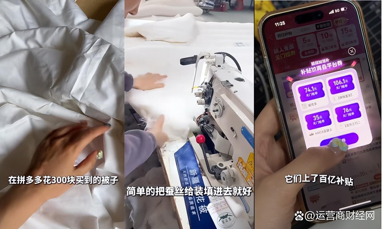 桑蚕丝夏凉被的制作依赖手工——工人需在水中一层层剥开蚕丝,剔除杂质,工艺复杂且人力成本高。原本定价460多元的蚕丝被,通过拼多多“百亿补贴”活动,商家让利15%,平台叠加15%-20%补贴并发放50元优惠券,最终消费者仅需300元左右即可入手。一位浙江湖州工厂负责人表示:“我们的工人都是附近村里的阿姨,平台扶持让我们既能维持合理利润,又能让利消费者。”