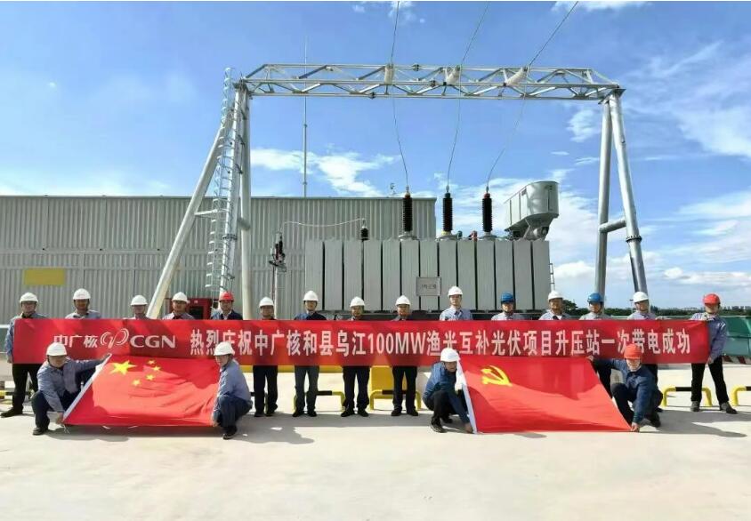 中广核和县乌江100兆瓦渔光互补光伏项目升压站一次带电成功