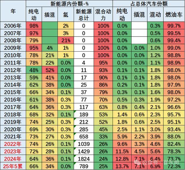 这些都说明,单以某一个新能源占优势的市场,是无法评价全球市场的。以全球维度来看,别说纯电车,就是包含插混、混动在内的所有新能源车,也还没成为市场主流。