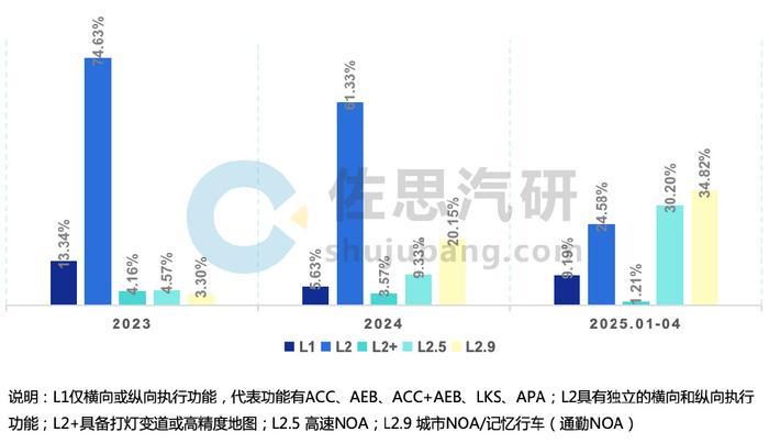 2023-2025.01-04 国内新上市乘用车ADAS功能(分级别)装配率