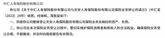 2023年9月,金融监管总局批准中汇人寿整体受让天安人寿保险业务及资产、负债,354万客户保单权益平移至新主体。其由中央汇金和保险保障基金注资成立,两者分别持股80%、20%,目前仍处于豁免披露偿付能力报告阶段。